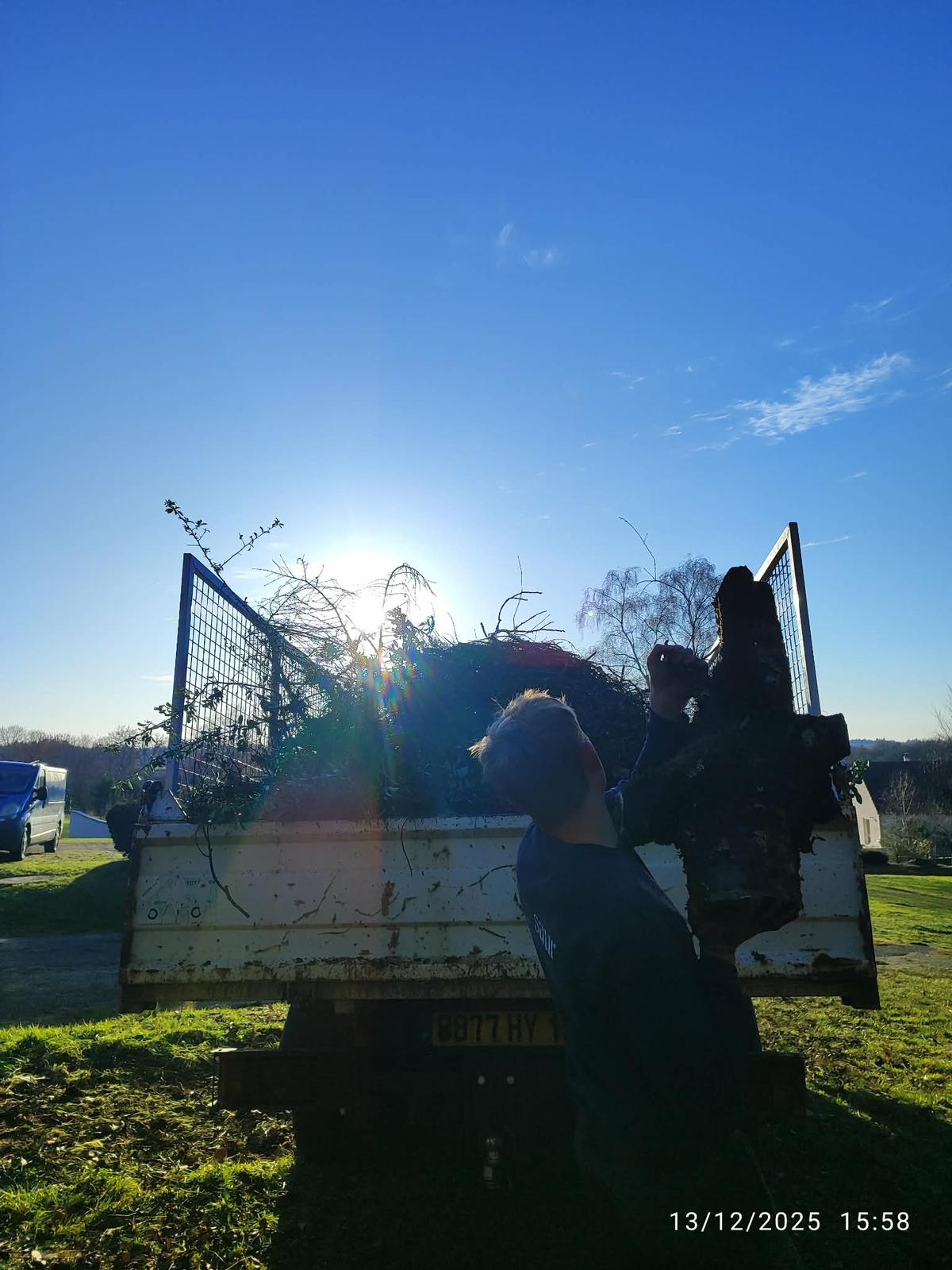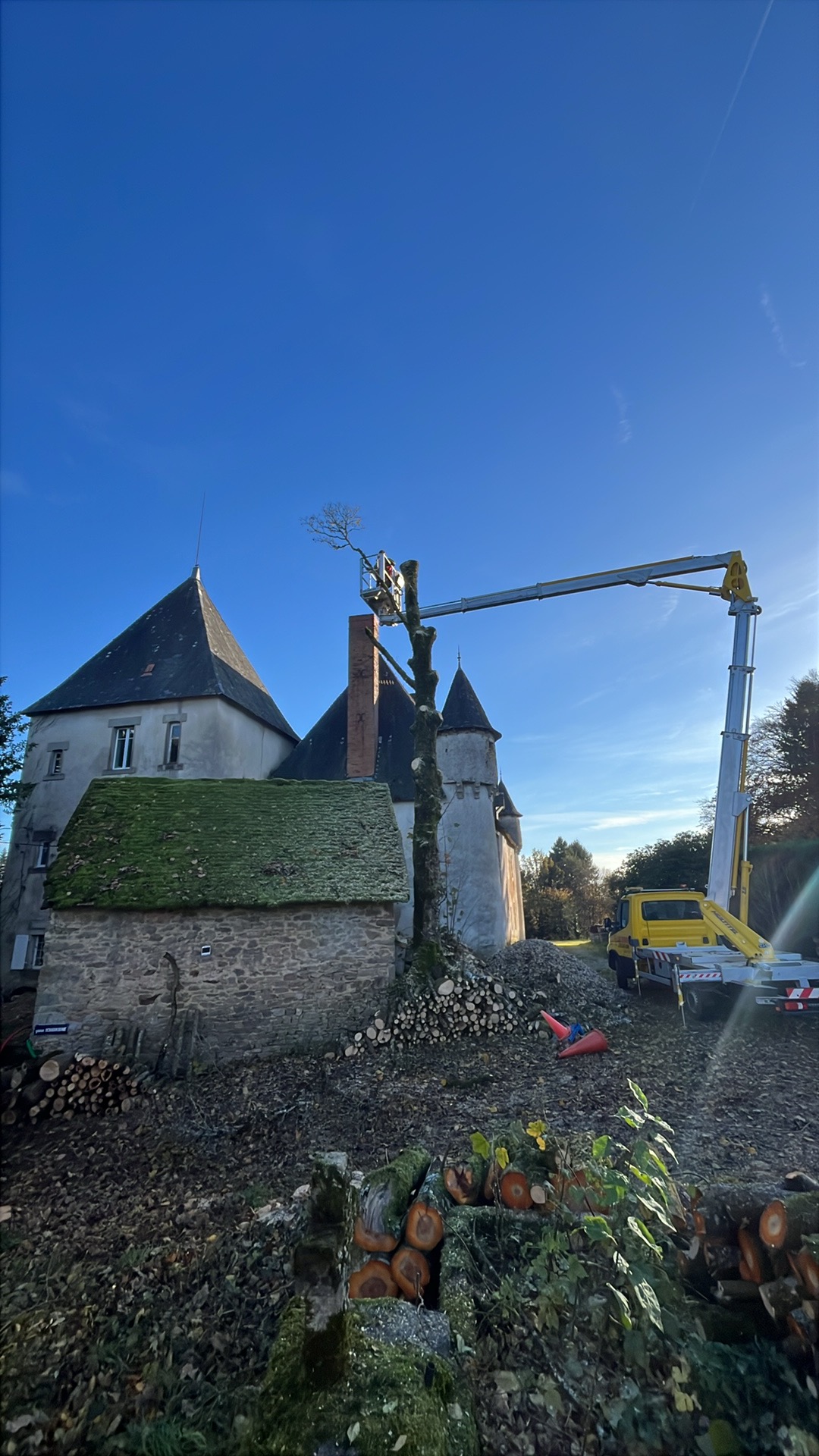 < Abattage, débroussaillage et évacuation de déchets verts.
